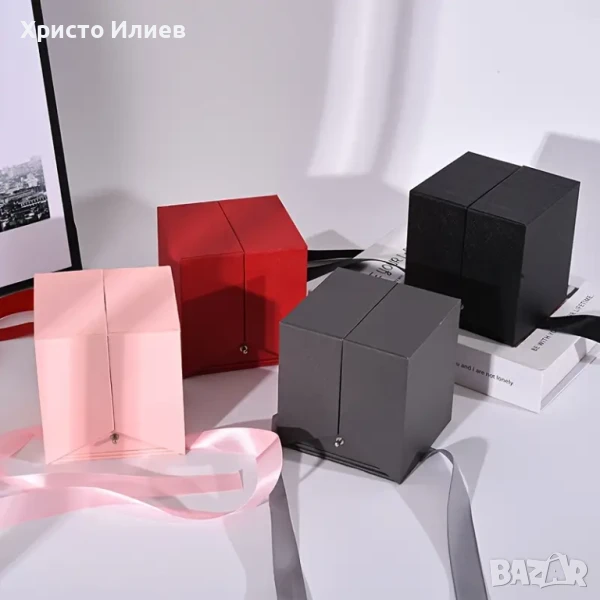 - Комплект с деликатна кутийка и красива торбичка, както и поздравителна картички. Опаковъчната кутия е силно текстурирана. Червено цвете , използвано през деня и нощта за украса на семейни стаи или за създаване на романтична атмосфера. Червената роза е символ на признателност, най-добри пожелания, вечна любов, страст и романтика.