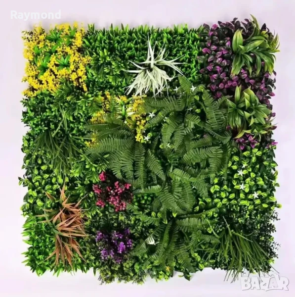 Декоративен Панел 1м² от Изкуствена Зеленина с Цветни Акценти – kw2734