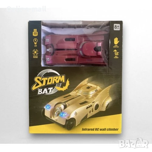 Издигни играта на ново ниво с антигравитационната кола Storm Bat – вдъхновена от стила на Батман! Благодарение на иновативната си технология, тази златна кола може да се движи не само по пода, но и по стени и тавани! С вградени инфрачервени сензори, LED светлини и USB зареждане, тя гарантира вълнуващи игри у дома. Подходяща за деца и всички фенове на супергероите!