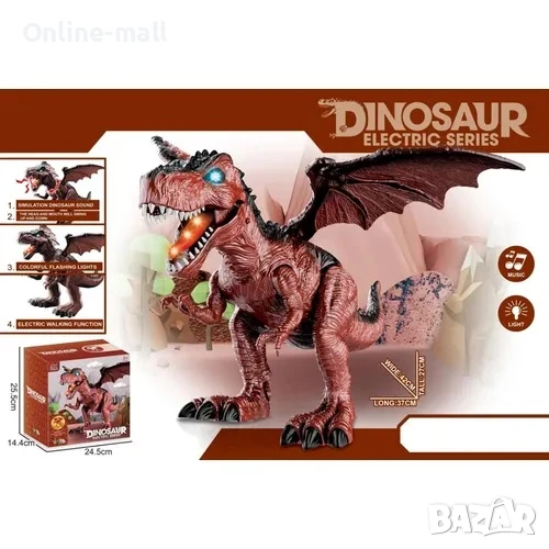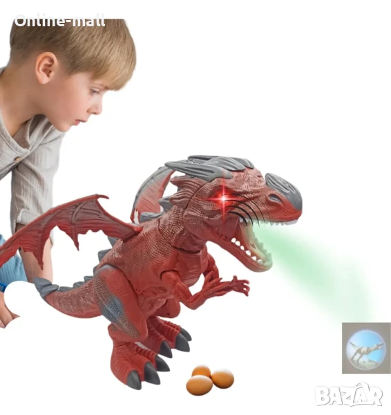 Готов ли си да се върнеш в света на динозаврите? Представяме ти големия интерактивен дракон "Spray Flying", който свети, движи се, издава реалистични звуци, пуска пара от устата си и дори снася яйца! Със своите внушителни размери (47x28 см) и подвижни крила, той ще впечатли всяко дете и ще внесе магия и екшън в играта. Перфектен подарък за деца над 3 години!