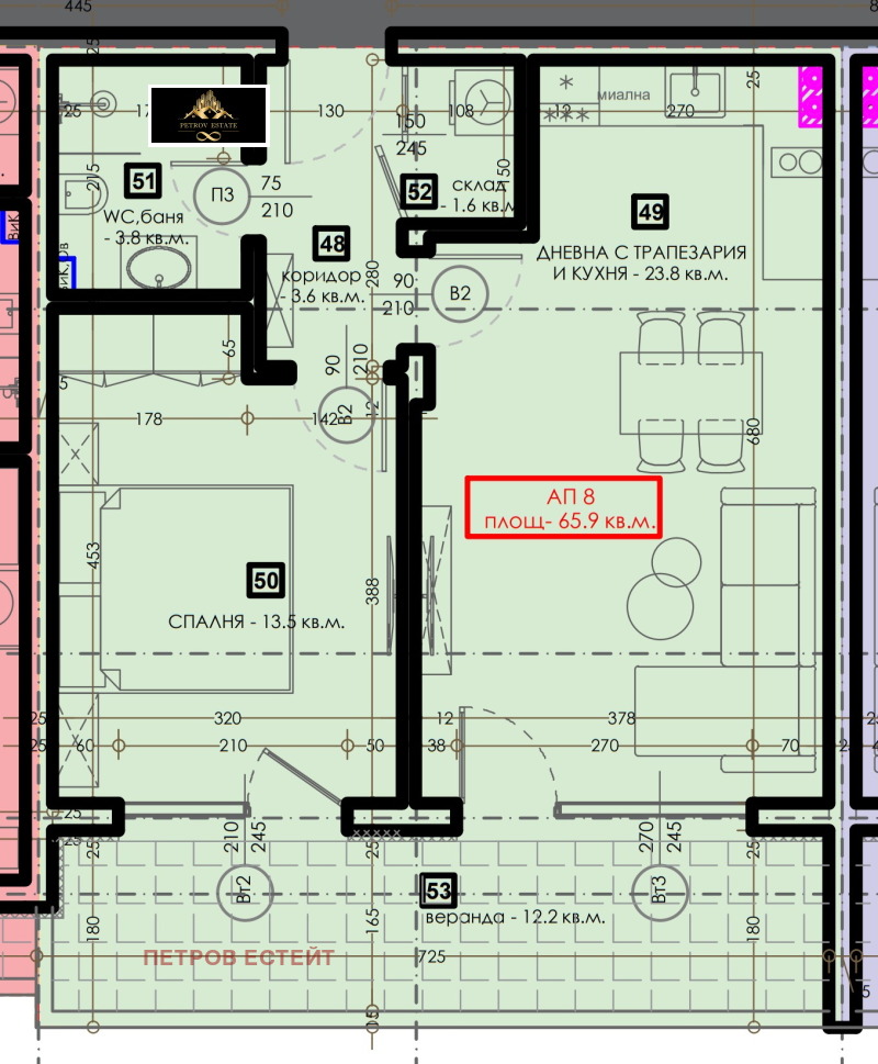 Сградата предлага голям избор от апартаменти, всеки с различни квадратура, разпределение и етажност. Апартаментите са идеално проектирани, като съчетават баланс от оптимално усвоено вътрешно пространство, функционалност и уют, за да задоволят нуждите на всеки купувач.