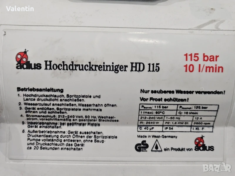 Професионална Немска водоструйка HD 115 → Обява 51206666