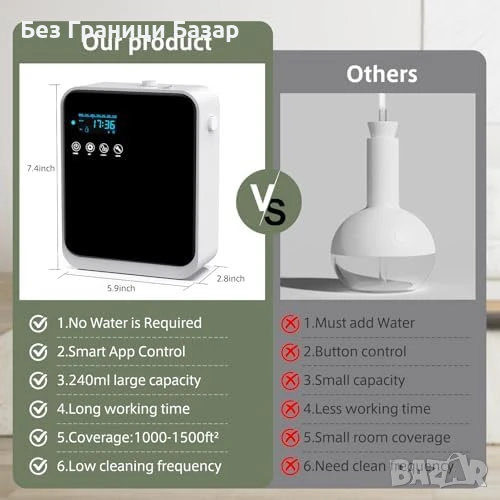 240 мл капацитет – дълготрайно ароматизиране без често доливане