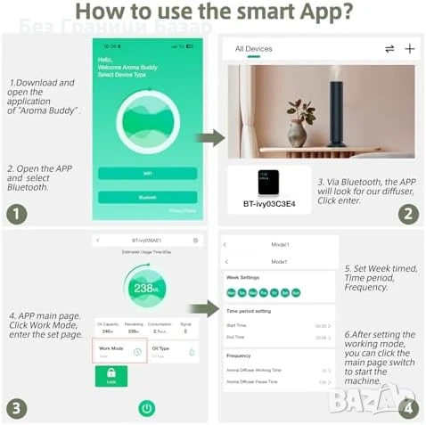 Нов Смарт дифузер за етерични масла 240мл Bluetooth Арома терапия дом