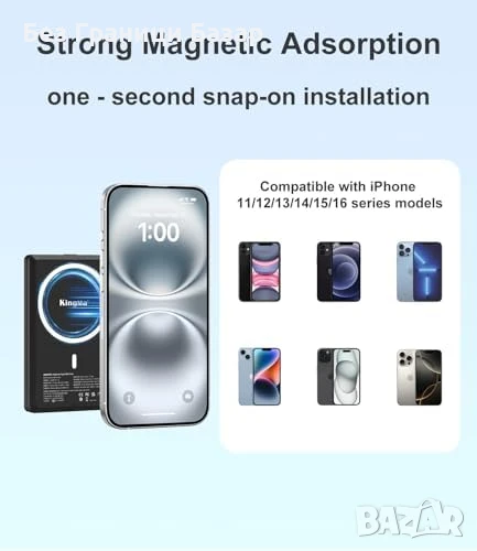 Съвместим с iPhone от 6s Plus нагоре; магнитно за iPhone 12+ или метален пръстен за по-стари модели