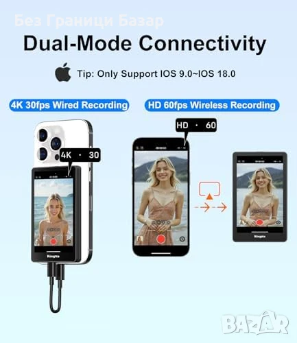 Нов King Ma 4K монитор за задна камера iPhone – Vlog, TikTok, Stream