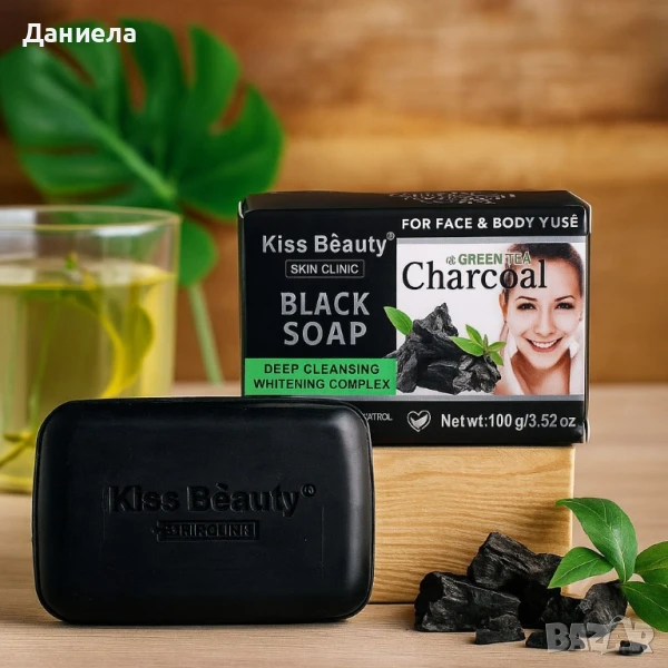 Продукт: Сапун за лице и тяло с активен въглен и зелен чай – Kiss Beauty Black Soap;
