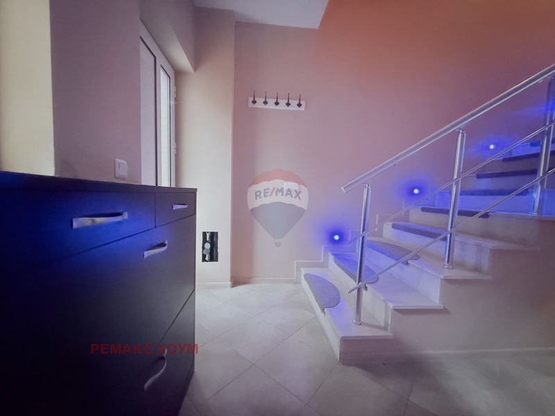 Жилището има функционално пространствено разпределение. Стаите на апартамента не са преходни и достатъчно просторни. Имотът се отоплява/охлажда с климатици. Изграждането на имота е изпълнено с използване на качествени материали, поставена е PVC дограма. Прозорците на второто ниво на жилището са от френски тип, което осигурява още повече естествена светлина във всекидневната. Подовите настилки са от теракотa. Обзавеждането и оборудването на апартамента са почти нови. Кухненският бокс е напълно оборудван: готварска печка, абсорбатор, микровълнова, съдомиялна и перална машини. Има и много удобен за използване вграден килер. От всекидневната има достъп към просторна открита тераса. От първото ниво, където се намира спалнята и санитарното помещение има стълбище с монтирано допълнително осветление, което води към втория етаж.