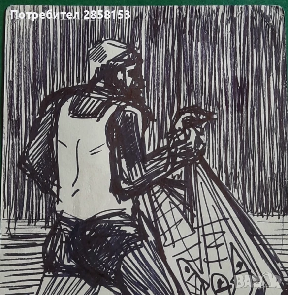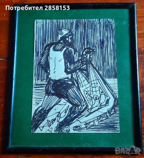 Стара картина на худ. Атанас Яранов/1940-1988/. Рисувана е с черен флумастер върху хартия. Размер 14/20 см без рамка . 21/25 см с рамка. Без подпис. За познавачи и колекционери.