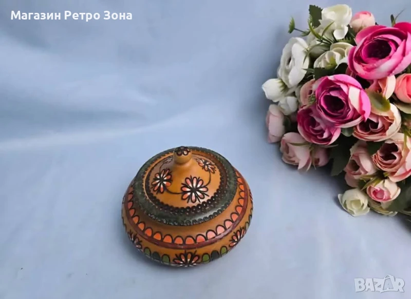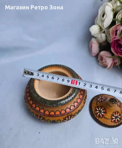 Красива пирографирана солничка.Перфектно състояние.Размери в снимките.