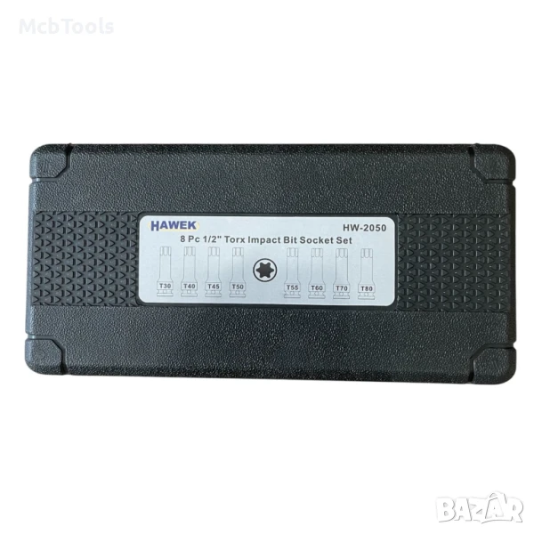 Комплект ударни торкс битове 1/2″ – 8 части HAWEK