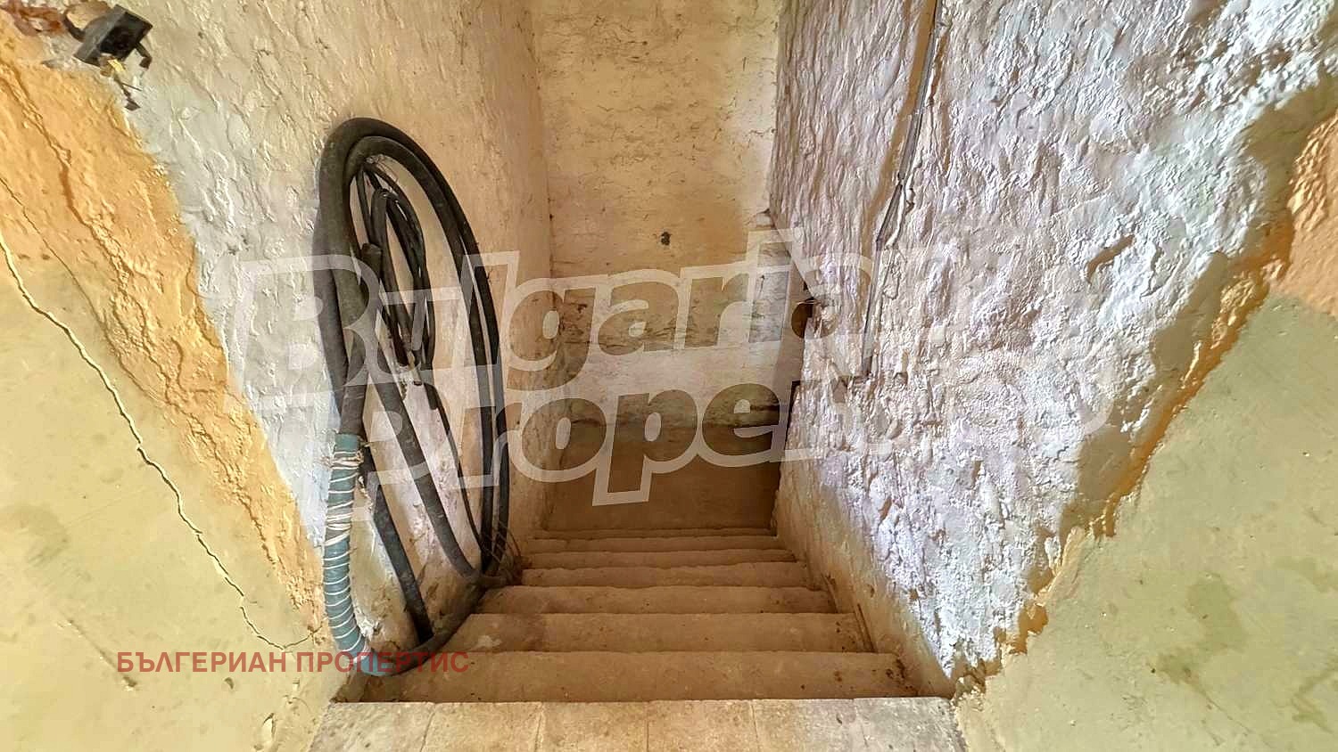 На приземно ниво е втория самостоятелен вход - стая с кухненски бокс, антре от което се спускат стълби към маза (около 15 кв.м.).