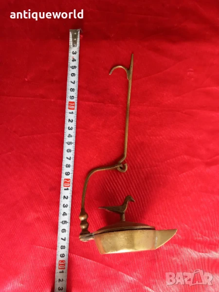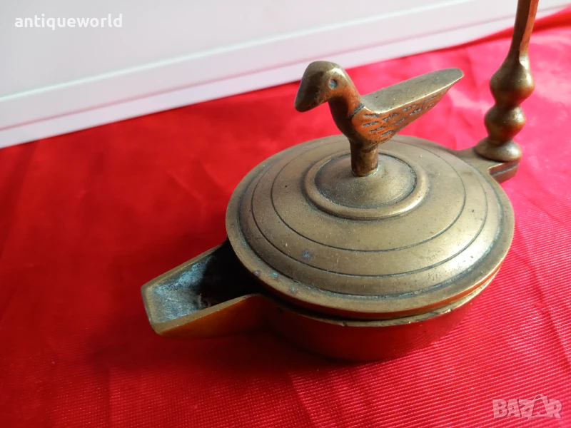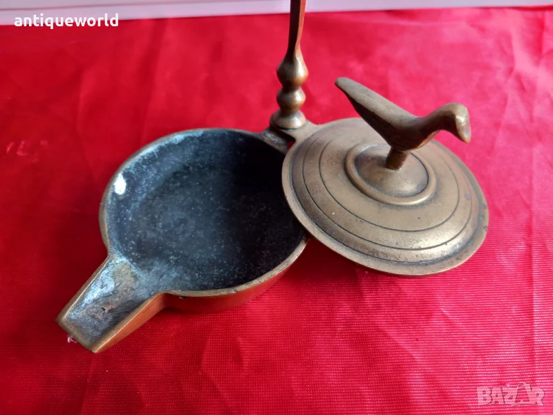 Стара Красива Османска Бронзова Маслена Лампа с Птица.