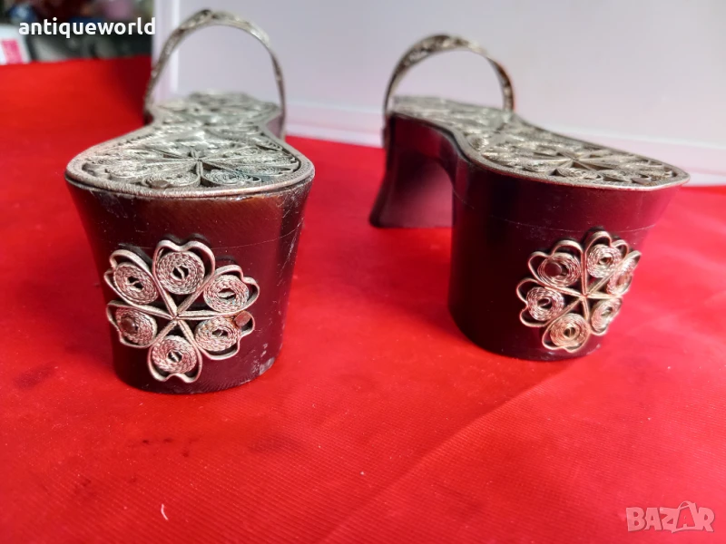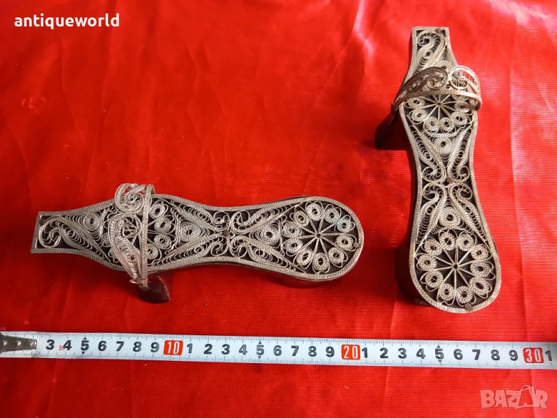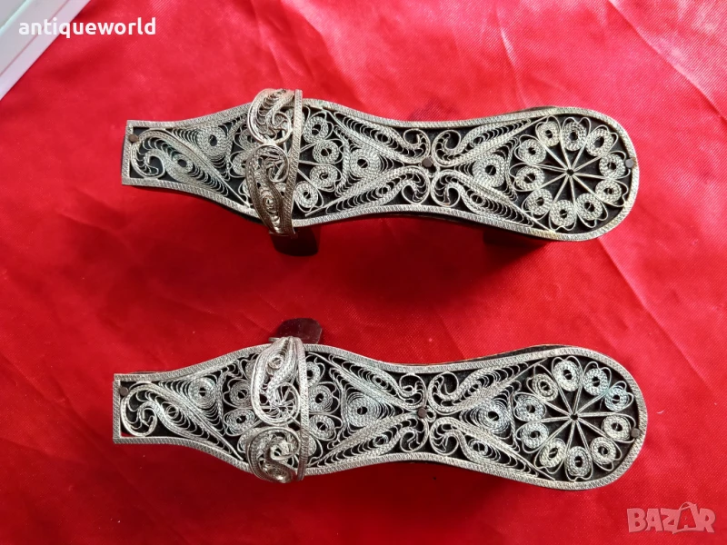 Много Красиви Декоративни Сребърни ОСМАНСКИ Дървени Чехли за Баня , Налъми За Хамам . Декорирани с Финно Ръчно Изработен Сребърен Филигран.
