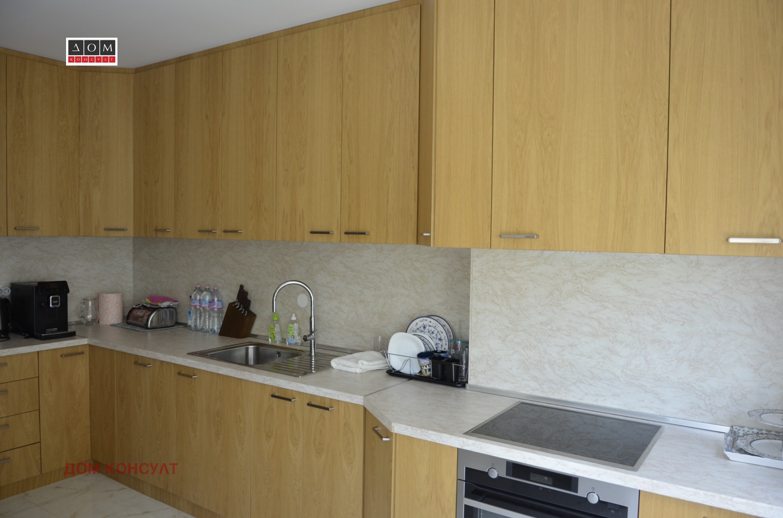 Нова обзаведена къща с АКТ 16 (Удостоверение за въвеждане в експлоатация) от 2024г. с РЗП - 304.21кв.м.!!!НЕ Е ЖИВЯНО В НЕЯ!!! Триетажна еднофамилна къща разположена на калкан в кв.'Манастирски ливади - Изток'. Местоположението е далеч от шума, напрежението и динамичния живот в големия град, тишина и спокойствие, с бърз и удобен излаз до главни пътни артерии на столицата, чрез бул.Тодор Каблешков и Околовръстен път. Къщaтa се продава във вида от снимките - ГОТОВА ЗА ЖИВЕЕНЕ!!!НАСТИЛКИ: Италиански гранитогрес, трислоен естествен паркет, интериорни врати, италиански гранитогрес в баните и тоалетната.ОБЗАВЕЖДАНЕ: Поръчкова кухня с плоскости EGGER, с австрийски обков(панти и механизми) - вградени електроуреди(котлони, фурна, абсорбатор, пералня), голям двоен хладилник, дневна холни секции - масивно дърво, голям диван с лежанка, спални - спален комплект - EGGER. PVC дограма Aluplast Германия - шесткамерен профил с троен стъклопакет; външно и вътрешно стъкло 'К' - ниско емисийно; средно стъкло - бяло;Външни Ал.щори на всички прозорци.Блиндирана входна врата, външна топлоизолация, минерална мазилка, двор с оформени тревни площи.Вътрешна топлоизолация по всички външни стени с вата и гипсокартон. Топлоизолация на пода - между Сутерен и Първи етаж.Звукова изолация по целия Калкан със съседната къща.Отопление: Термопомпа - вода - въздух.Соларни панели за отопление, ток и вода. Къщата е с общо РЗП 304кв.м. и е със следното РАЗПРЕДЕЛЕНИЕ: Полу Сутерен с естествено осветление и вентилация: ЗП 104,45кв.м. - Гараж за две или три коли, котелно помещение, мазе-склад, Етаж ПЪРВИ със ЗП 97,32кв.м: входно преддверие, кухненски бокс, трапезария и светла дневна с излаз на тераса и двор(около - 100кв.м), тоалетна. Етаж ВТОРИ със ЗП 102,44кв.м родителска спалня със самостоятелна баня с тоалетна, две детски и тераса, втора баня с тоалетна за детските. Изложение: Юг(дневна и детски)/Изток(родителска).
