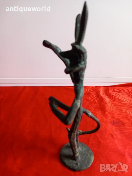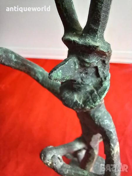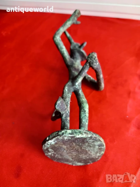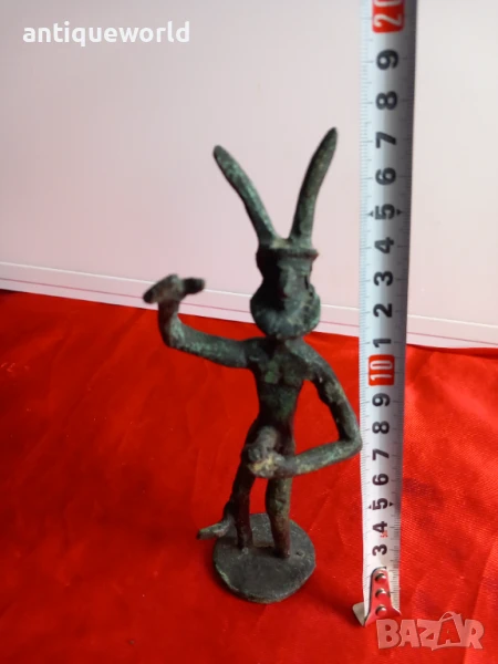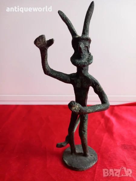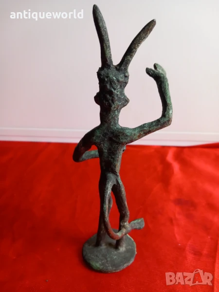 Много Красива Стара Бронзова Пластика ,Фигура на Древноиталийския Бог Фавн от Римската Митология,Който е Богът на Горите, Полята, Пасищата и Животните . САТИР.С Естествената си Непочистена Патина.