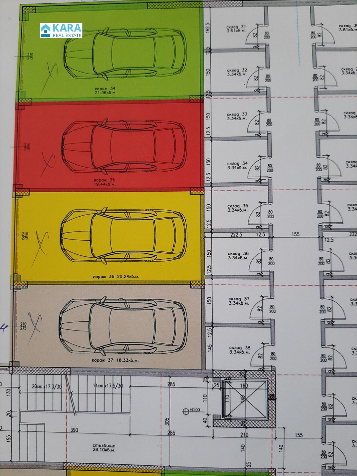 Надземен гараж с ролетна врата в кв. Възрожденци ( до 100-ните блокове ). Гаражът е 21 кв. м, в новопостроена сграда, която скоро ще бъде напълно завършена.