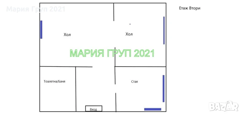 Втори етаж: стая, голям хол, антре (проект за баня)!!!