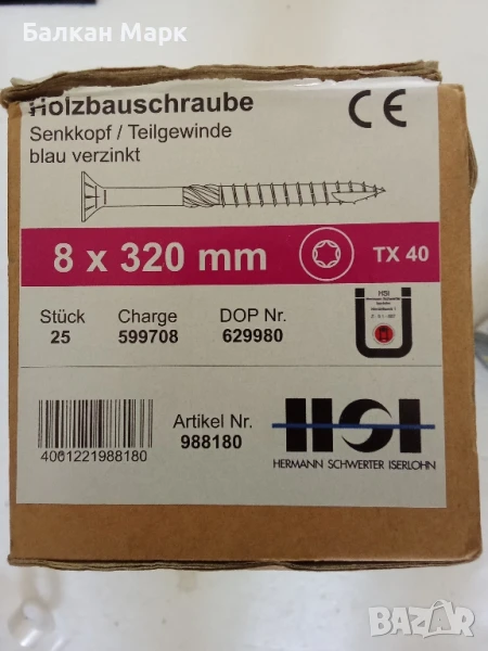 Професионални винтове за дърво тип "Торнадо" – HSI 8х320, 25бр Размер: 8x 320 mm