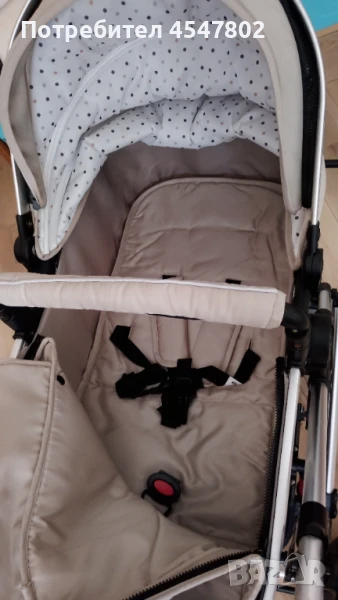 Комбинирана количка 2 в 1 ,използвана ,но в добро състояние.Има леки забележки.Самия цип на покривалото заяжда и липсва чантата към нея,заради скъсана дръжка .