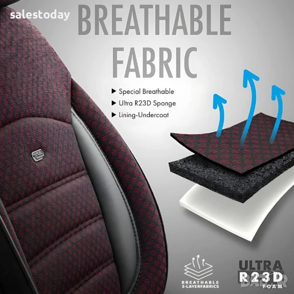 Дишаща материя: Благодарение на 3-слойной дишаща материя, която предпазва от изпотяване дори при дълги пътувания и подобрява комфорта при шофиране. Страничните опори, които предпазват от болка, създавайки специална форма за кръста и гърба.