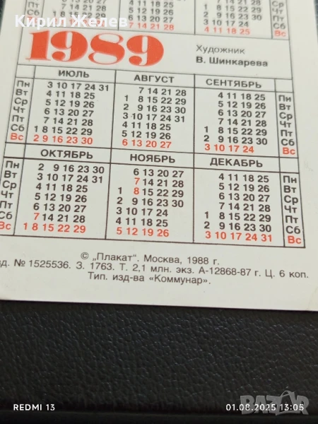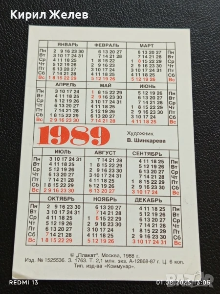 Старо календарче 1989г. Москва СССР За МИР и СОЦИАЛЕН ПРОГРЕС За КОЛЕКЦИЯ 35344
