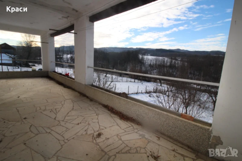 на втория 140 кв . м. напълно обзаведена и готова за живеене. с двор 850 кв.с уникална гледка към балкана. На 12км.от центъра на града. В близост е до автобусна спирка.