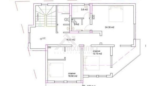 На етажа са проектирани три спални с внушителни размери и общ санитарен възел за етажа, както и