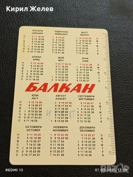 Старо календарче 1987г. BALKAN AIRLINES рядко за КОЛЕКЦИЯ ДЕКОРАЦИЯ 35409