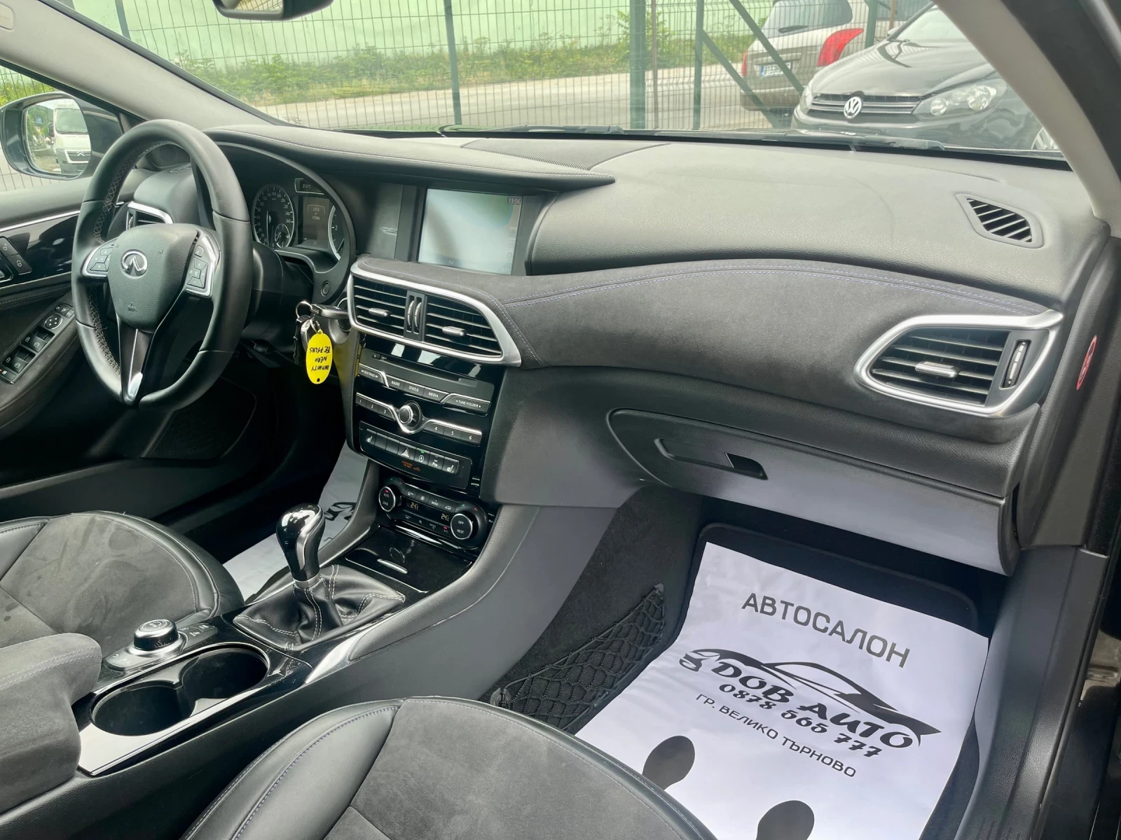 INFINITI Q30 отлично запазен салон, без технически и външни забележки Нов внос от Италия! Без ръжда и корозия по купето. Сервизна история : SJKDAAH15U1006058 Мултифункционален кожен волан Рекаро салон с обърната кожа, обкантена с лилав шев Подгрев на седалките Навигация Двузонов климатроник Автоматично затъмнение на огледалото за обратно виждане Фабрично затъмнени задни стъкла Автопилот Заден парктроник CD, AUX, USB 6 скорости Лети джанти 2 ключа При желание от Ваша страна може да изготвим лизингова оферта като работим с няколко лизингови компании. Одобрението става в рамките на един час. Всички автомобили се продават с фактура и договор, без допълнителни нотариални такси. Оказваме пълно съдействие на клиента за регистрация на автомобила в КАТ Велико Търново или изваждане на транзитни номера. Автомобилът е наличен за оглед и пробно шофиране в автокъща ДОБ АУТО, която се намира на входа/изхода на гр. Велико Търново, срещу бензиностанция Ромпетрол.