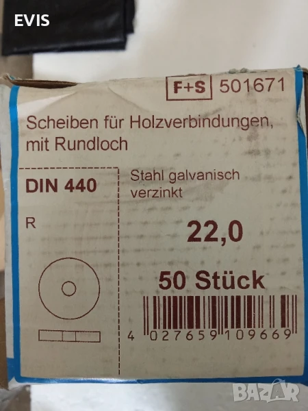 Шайби за дърво DIN 440 –22,0, Ø70 mm, дебелина 5 mm – 50 броя комплект 🔩 Големи шайби за дървени конструкции (DIN 440) – 70 mm външен диаметър – 22 mm отвор – Дебелина 5 mm 📦 Комплект: 50 броя Тегло 1шайба - 135г. ✅ Идеални за: Дървени греди и носещи конструкции Строителство и ремонт Покривни сглобки Професионални и домашни проекти 🚚 Безплатна доставка до офис на Еконт или Спиди при поръчка над 49 лв! 📌 Може да комбинирате с други мои обяви за болтове, гайки и крепежи. 💬 При интерес – пишете ми или звъннете