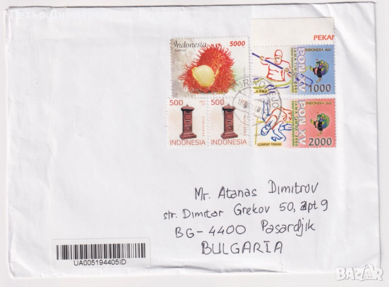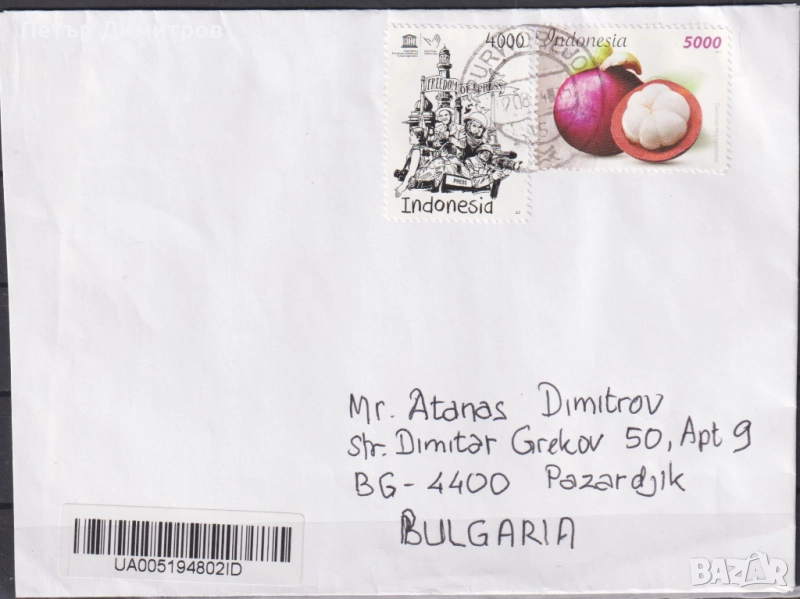 1. Пътувaл плик с марки Флора Плод Свобода на пресата 2017 от Индонезия. Цена € 1,80 П81-19 (сн. 1)