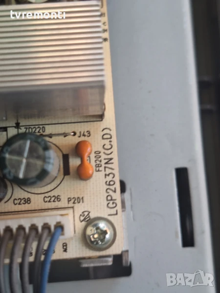 POWER SUPPLY 68709D0006B LGP2637N REV1.2 за 26-инчов телевизор LG 26LC2R с дисплей T260XW02 V5. Платката е използвана, но гарантирано работеща, демонтирана от телевизор със счупен дисплей. Тествана е от нашия техник.