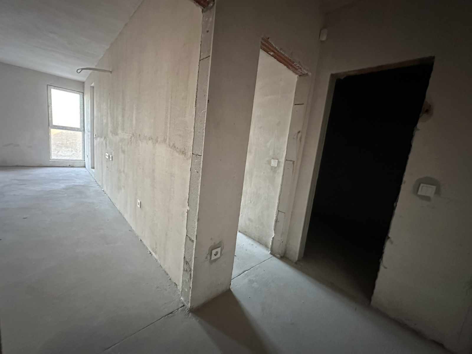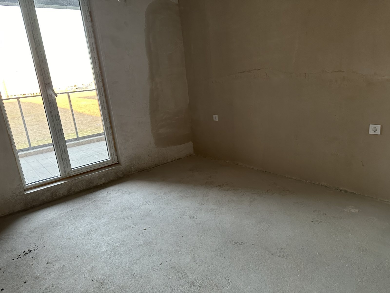РАЗПРЕДЕЛЕНИЕ: входно антре, голям хол с кухня и прилежаща тераса с излаз от двете стаи, баня с тоалетна, мокро помещение, спалня.