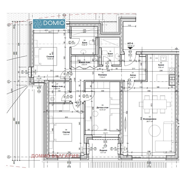 DOMIO предлага ексклузивно за продажба Апартамент с три спални, разположен в нова бутикова жилищна сграда с 8 апартамента и модерен архитектурен облик.