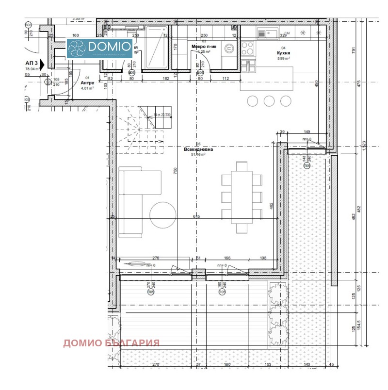 Просторна всекидневна 57 м² с излаз към двора