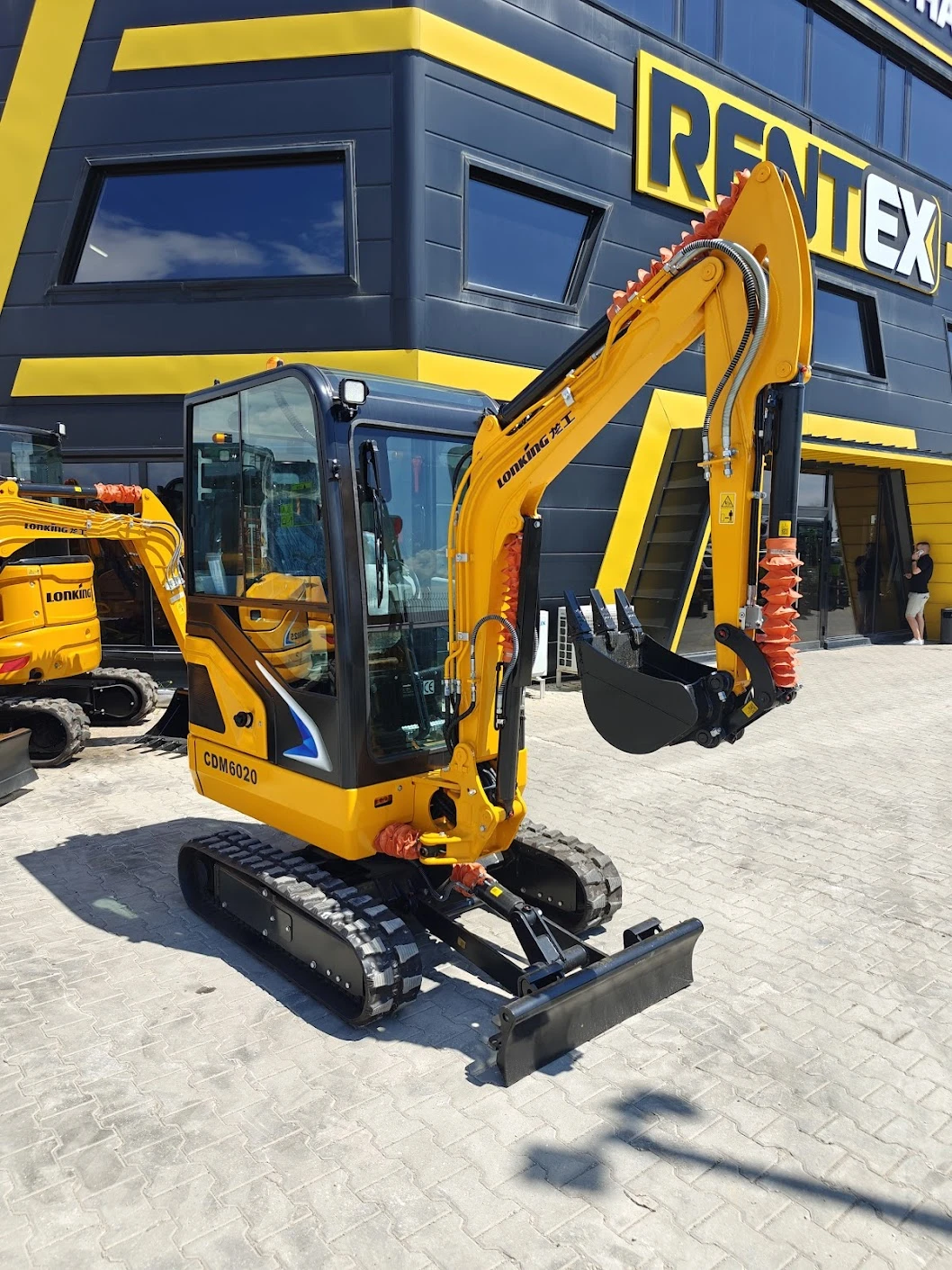 Мини верижен багер Lonking CDM6020 Кат. : BTX15598 Общи характеристики Марка: Lonking Модел: CDM6020 Година: Нов модел (~2025) Работно тегло: 2  000  kg Състояние: Нов Ходова част: Каучукови разширяеми вериги Кабина: Сгъваем ROPS Хидравлични линии: 2 (включително за чук) Бързосменник: Предвиден за хидравличен Двигател и захранване Марка двигател: Yanmar Модел: 3TNV80F Мощност: 13. 4  kW (≈ 18 к. с. ) Гориво: Дизел Захранване: 12  V Основни размери и показатели Капацитет на кофа: 0. 04  m³ Ширина на кофата: около 380  mm Товароподемност: 300кг Максимална дълбочина на копаене: около 4  020  mm Максимален хоризонтален обсег: около 3  940  mm Височина на разтоварване: около 2  720  mm Производителност и ходови параметри Сила на копаене (кофа): около 22. 7  kN Сила на разкъсване (стрела): около 9. 8  kN Скорост на движение: 2. 6 4. 5  km/h Максимално работно налягане: около 210  bar Хидравличен дебит: около 62  l/min Размери на машината Дължина: около 3  820  mm Ширина: 990  mm (регулиращо се според база) Височина: 2  210  mm Bautrax е официален представител на Lonking за България.
