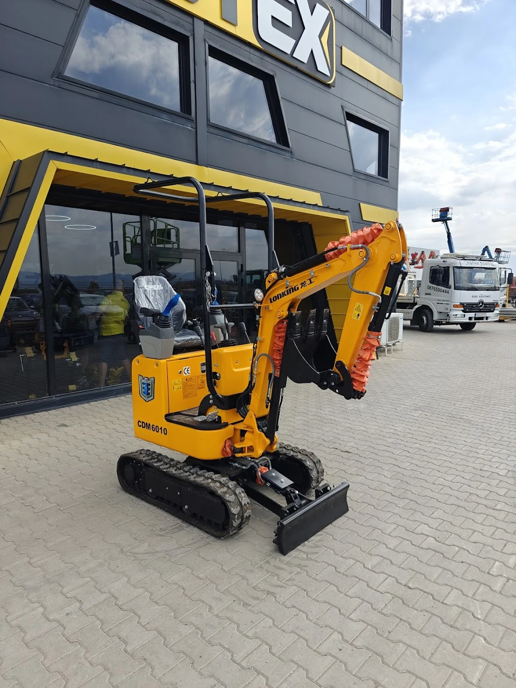 Мини багер Lonking CDM6010 Кат. ном. BTX15597 Основни технически характеристики: Марка: Lonking Модел: CDM6010 Година: 2025 Година на производство: Нов Капацитет: 0. 035 кб. м. Тип: Мини верижен багер Работно тегло: 1 000 kg Мощност на двигателя: ~7. 6 kW (10. 3 к. с. ) Двигател: Yanmar Работно налягане: 18 MPa Капацитет на кофата: 0. 025 m³ Брой кофи: 1 стандартна Максимална дълбочина на копаене: около 1 650 mm Максимален хоризонтален обсег: около 2 900 mm Височина на разтоварване: около 1 750 mm Сила на копаене на кофа: ~8. 5 kN Сила на разкъсване: ~7. 5 kN Скорост на движение: до 2. 2 км/ч Управление: Джойстик Допълнително оборудване: Разширяеми вериги Линия за чук (хидравлична) Сгъваем предпазен ROPS навес Булдозерна дъска Работни светлини Размери: Дължина: ~2 800 mm Ширина: 930 mm (разширяваема до ~1 200 mm) Височина: ~2 200 mm Bautrax е официален представител на Lonking за България.
