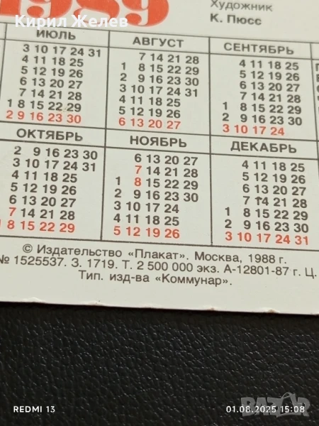 Старо календарче 89г. Пази природата МОСКВА за КОЛЕКЦИЯ ДЕКОРАЦИЯ 26525 → Обява 51217523