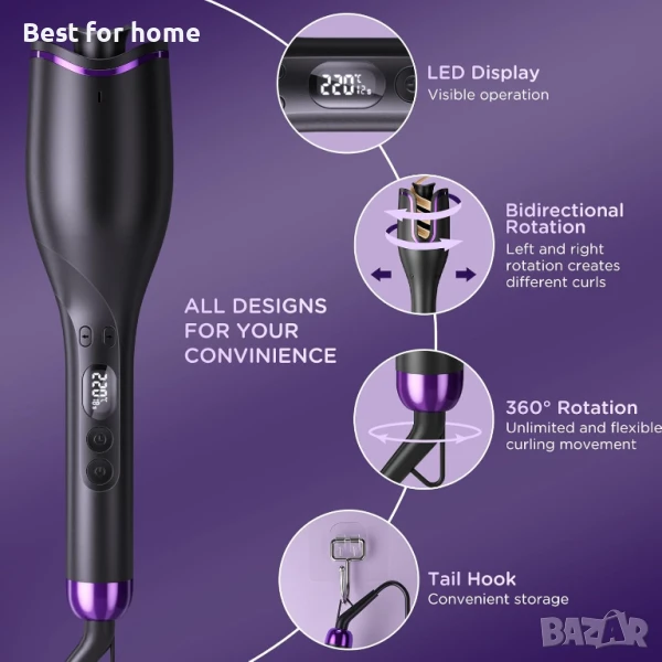 НАЙ-ДОБРИЯТ ПОДАРЪК ЗА КЪРДЕНЕ ЗА НАЧИНАЕЩИ: Тази автоматична маша за коса с LED дигитален дисплей и функция за звукови сигнали, просто изберете подходящата температура и време, разделете косата си на кичури с дължина 2,5 см и я поставете в нагревателния резервоар, натиснете и задръжте левия или десния бутон, за да стартирате автоматичното въртене; след като автоматичното въртене спре, пръчката за къдрене издава звуков сигнал, за да сигнализира, че процесът на къдрене е завършен. Можете лесно да създадете перфектни плажни вълни за минути.