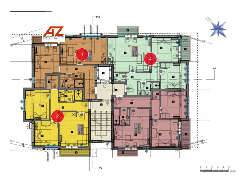 Апартамент N4 е с застроена площ 71.15 м2, а с об.ч 79.45 м2., ситуиран на втори етаж.