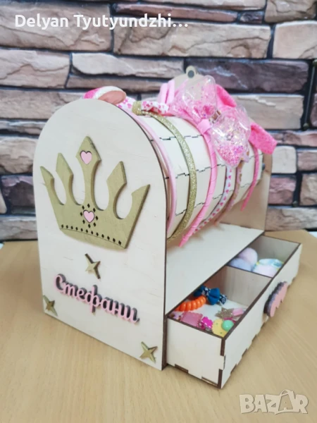 Представяме ви един наистина уникален и многофункционален подарък за всяко момиче! Този персонализиран органайзер е не просто поставка за диадеми, а истинско ковчеже със съкровища!