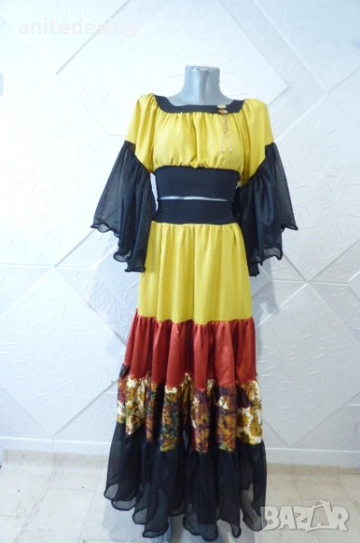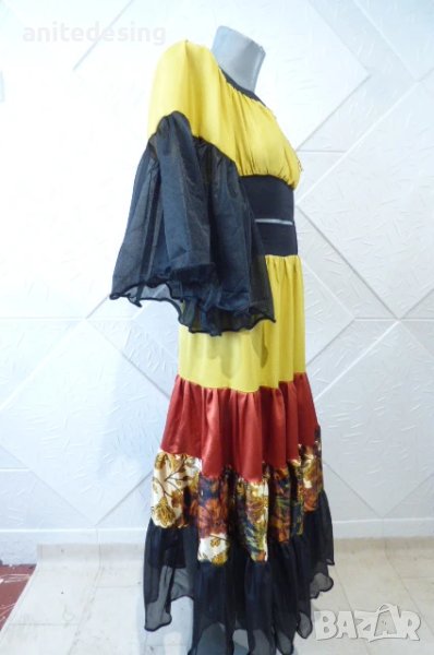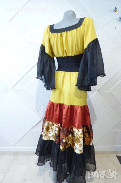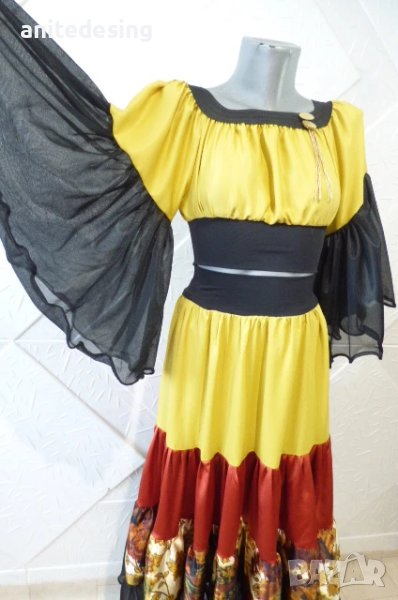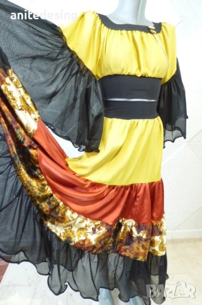 Детски костюм за ромски танци - пола и блуза, изработена от ликра ,мрежа, сатен ,текстил.