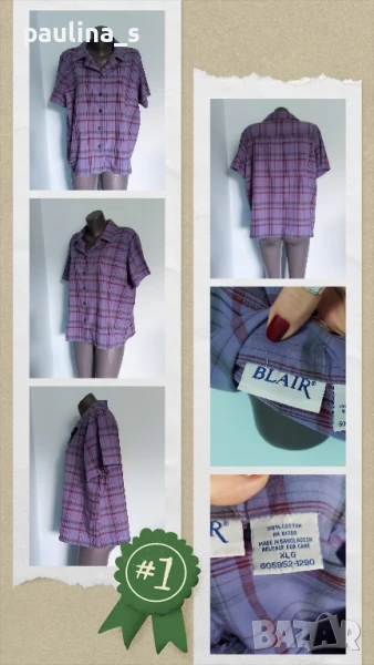 3️⃣. Колаж 2XL / 3XL - Plus size / "BLAIR" / Дамска памучна риза "BLAIR". ВИНТИДЖ, брандът вече не съществува. Цената е крайна 34,99лв. Дамска риза, модел boyfriend's shirt, с къс ръкав. Материята е 100% фин индийски памук, леко вталена с изчистен силует, съобразен с размера. Неразличима от нова.