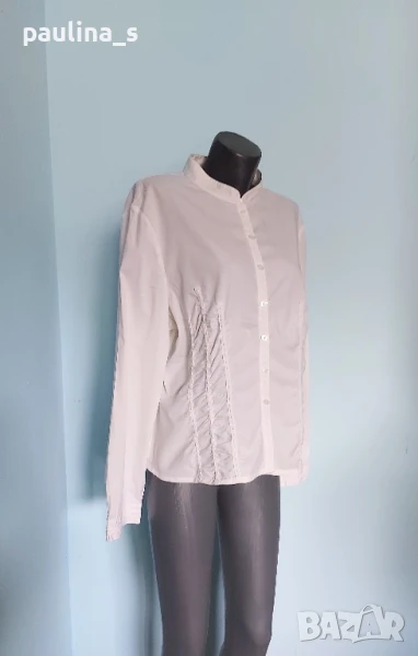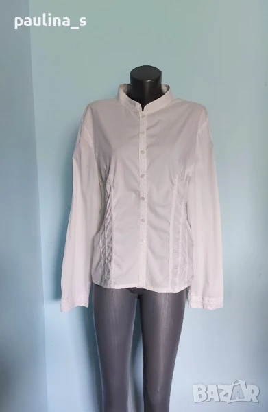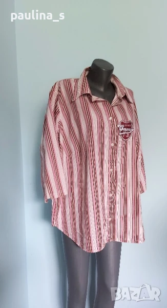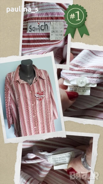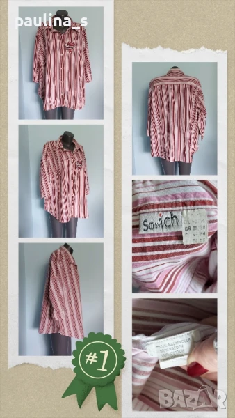 5️⃣. Колаж / 2XL / 4XL - "So bin ich". Цената е крайна 29,99лв. Дамска брандова, памучна риза за по-едри дами. Ръкавите са 7/8 с дискретна цепка отстрани. Леко втален силует, с вертикални райета, съобразено с размера, оптически да издължава фигурата. Хипоалергична и перфектна дреха, неразличима от нова.