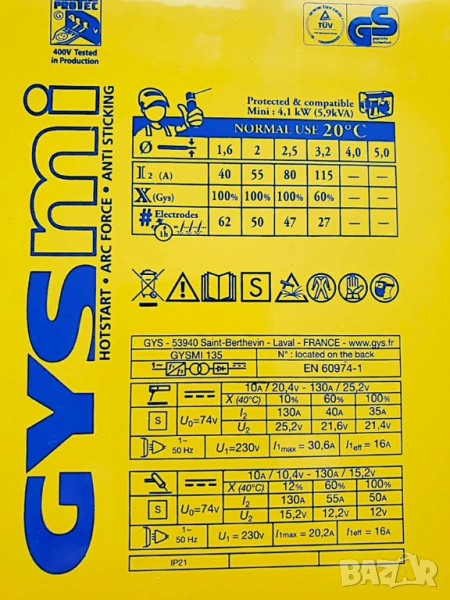 GYS 135 e малък, но с изключително висока производителност инверторен заваръчен апарат с микропроцесорно управление, дигитален дисплей и електронни контролни бутони.
