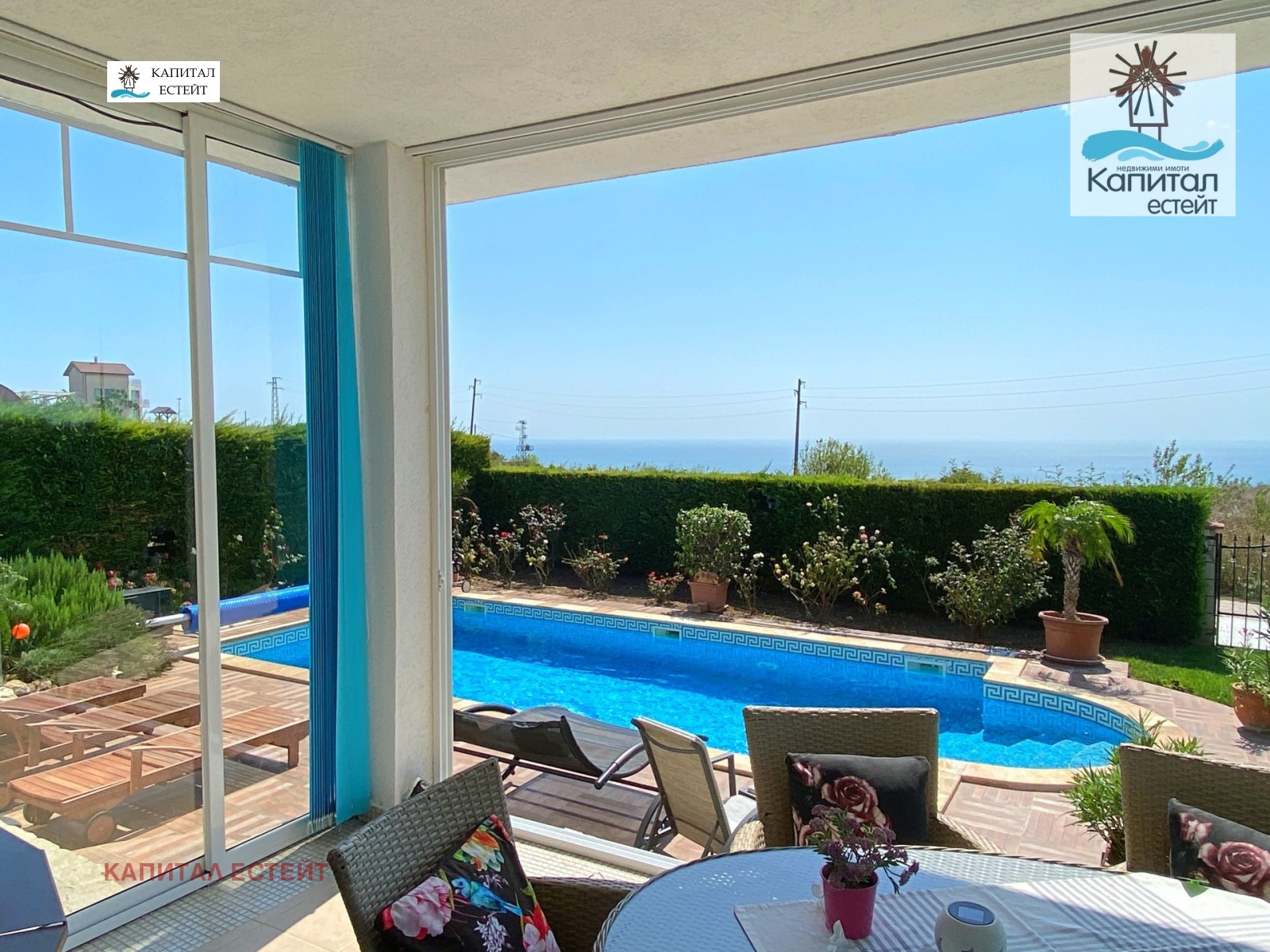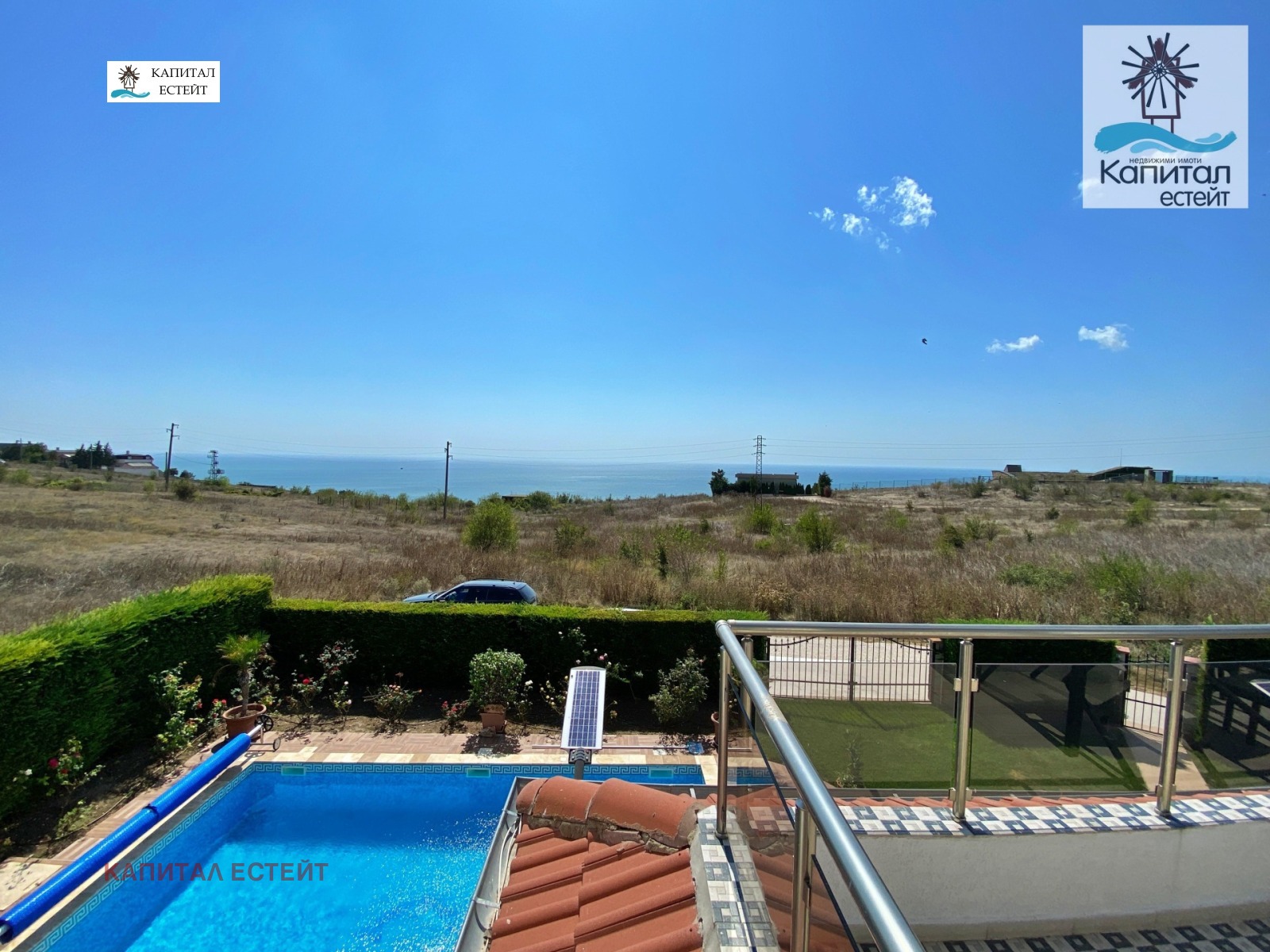 Панорамна морска гледка от скалист рид тишина, простор и усещане за безвремие. Собствен басейн в двора.