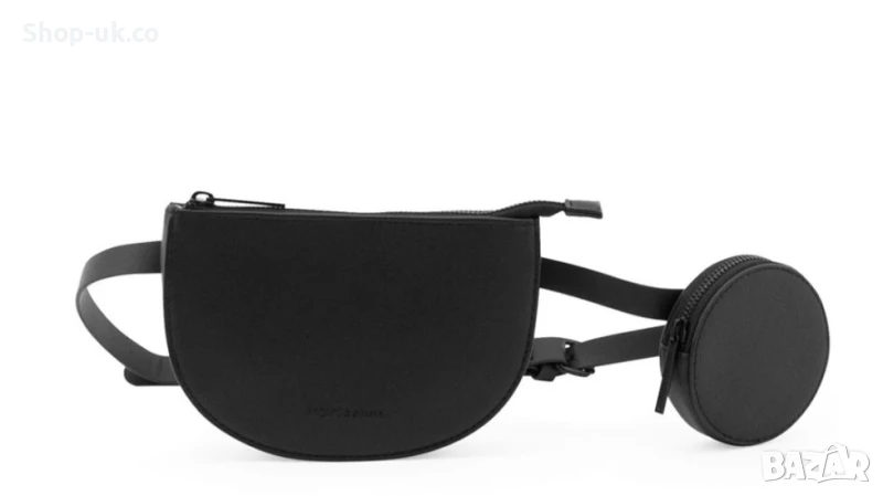 Елегантна и практична чанта за колан с два подвижни портфейла и регулируема презрамка. Коланът и портфейлите са изработени от висококачествена веганска кожа. Черните ципове са YKK.
