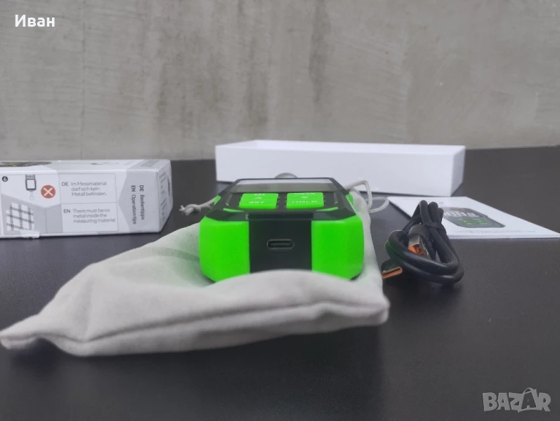 --Съвет 1: Избършете повърхността на измервания материал до сухо и почистете за най-добри резултати. В допълнение, материалът за измерване (стени, зидария и дърво) не се подрежда или съхранява върху мокри материали