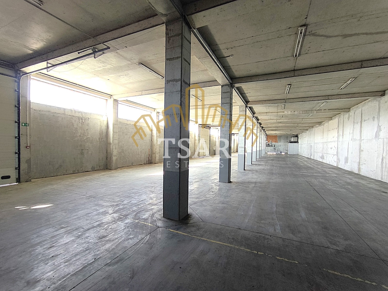 Складът е с площ от 840 кв.м., като разполага с 3 рампи, 2 санитарни възела и офис помещение.